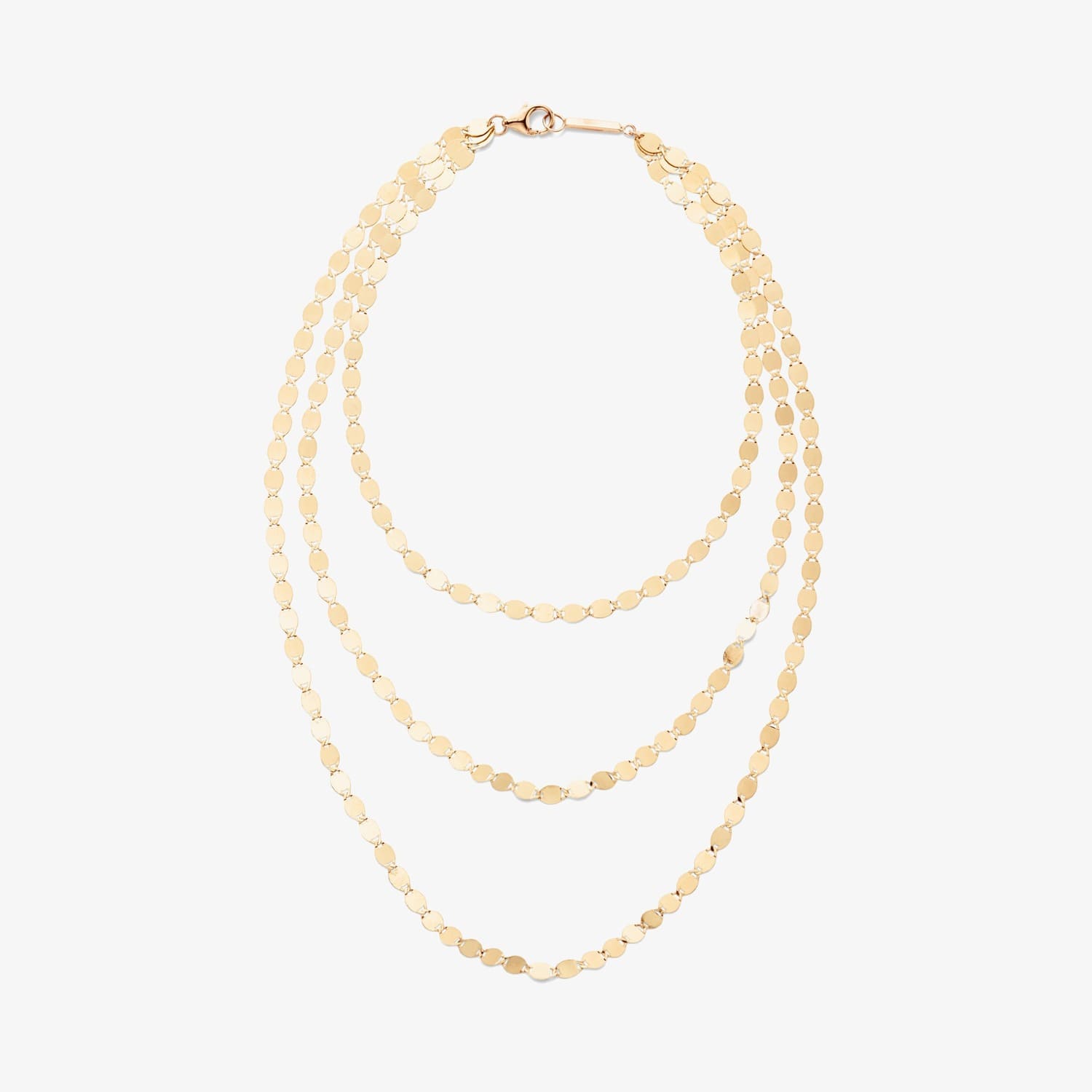 Brățară de gleznă cu trei șiruri, cel mai scurt șir având 22 cm, șirul din mijloc având 28 cm și cel mai lung șir având 34 cm.