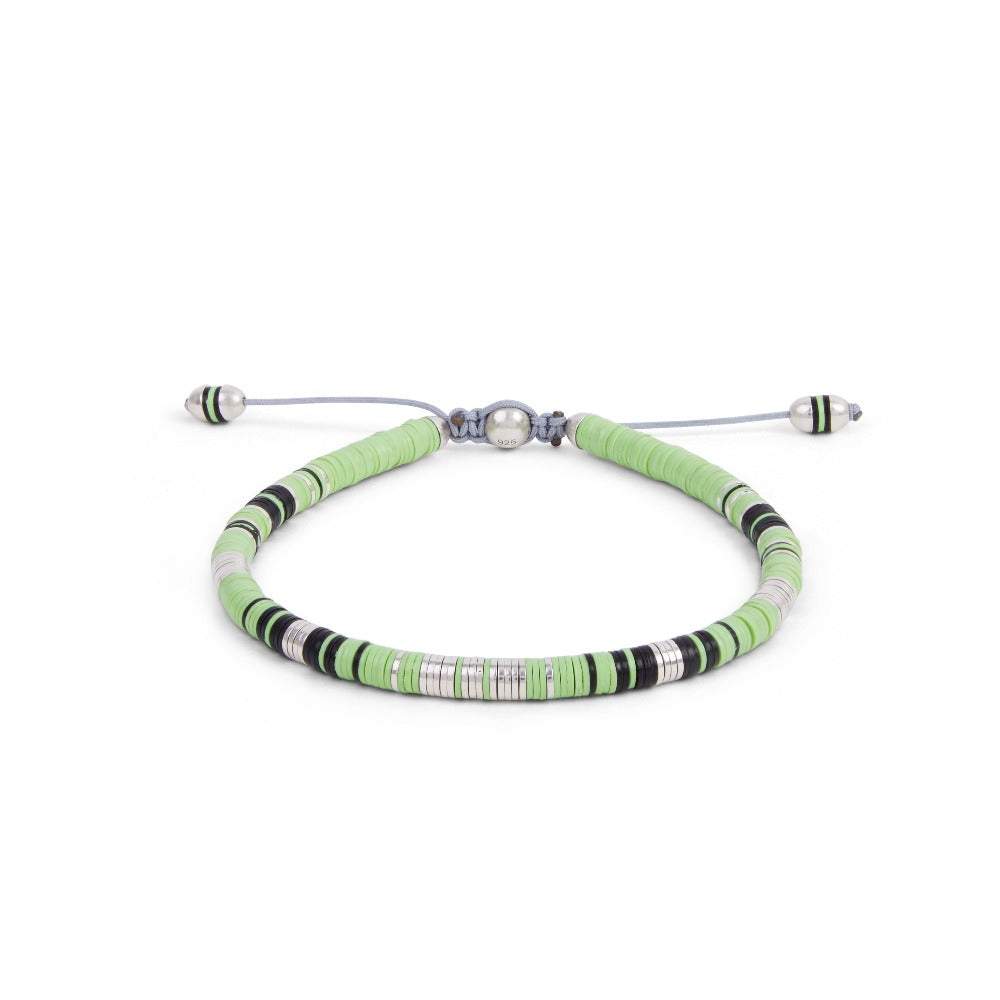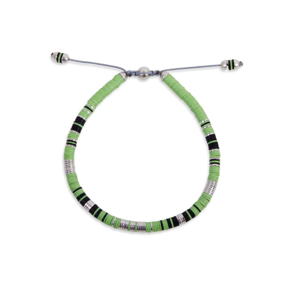 Lime Green African Trade Beans And Silver Bracelet MAOR