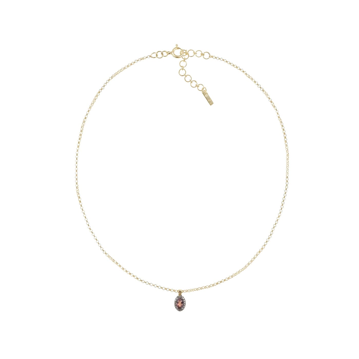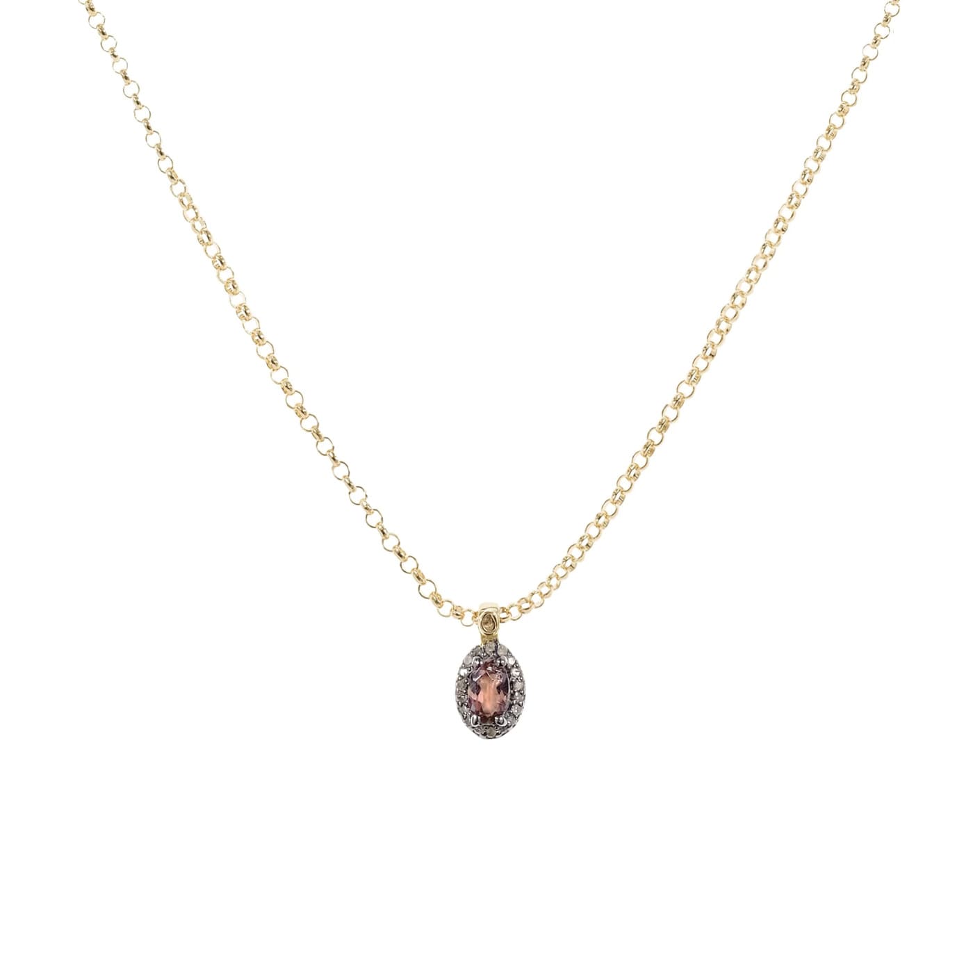 Add to WishlistColier din argint 925, realizat dintr-un lanț cu zale rotunde cu finisaj auriu. Este împodobit cu un medalion din argint oxidat, încrustat cu o turmalină roz și mini diamante neregulate. O balama împodobită cu un diamant Polki completează designul pandantivului.