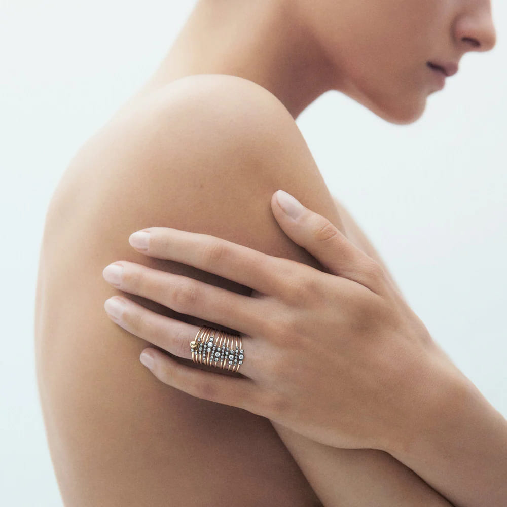 Add to WishlistRealizat din aur galben de 9k și aur rodiat, inelul Sigma EL25 reia elementele caracteristice ale brățărilor noastre Sigma într-o formă delicată, care poate fi purtată în combinație cu alte inele. Purtând diamante albe de 0,08 ct (G+, VS), acesta combină precizia grafică și strălucirea subtilă. Purtat singur, acesta dezvăluie forța sa discretă; purtat în combinație cu alte inele, acesta devine parte dintr-un dialog luminos.