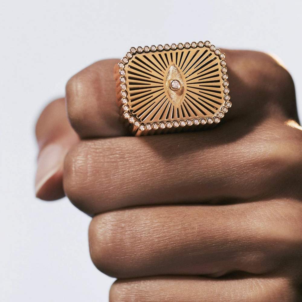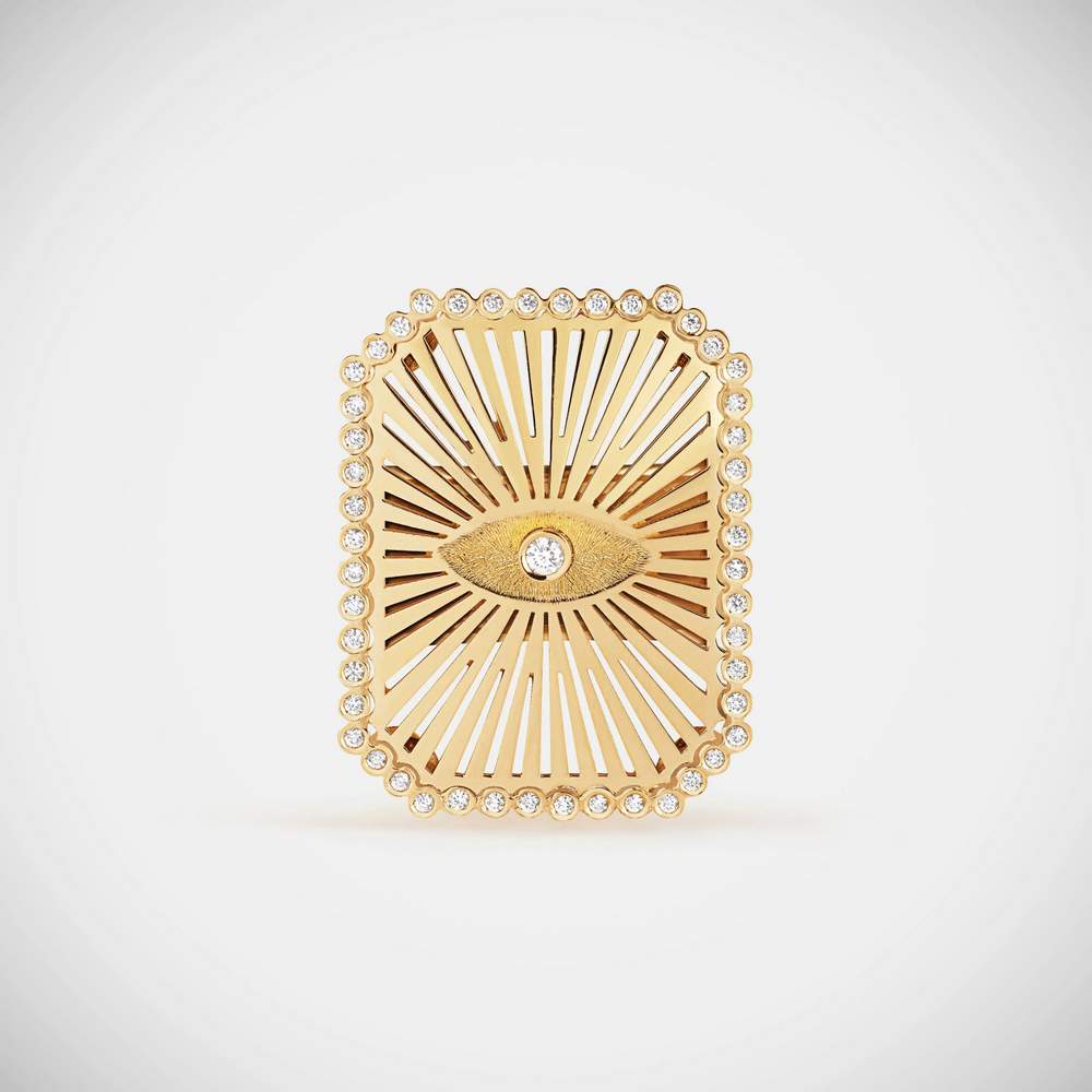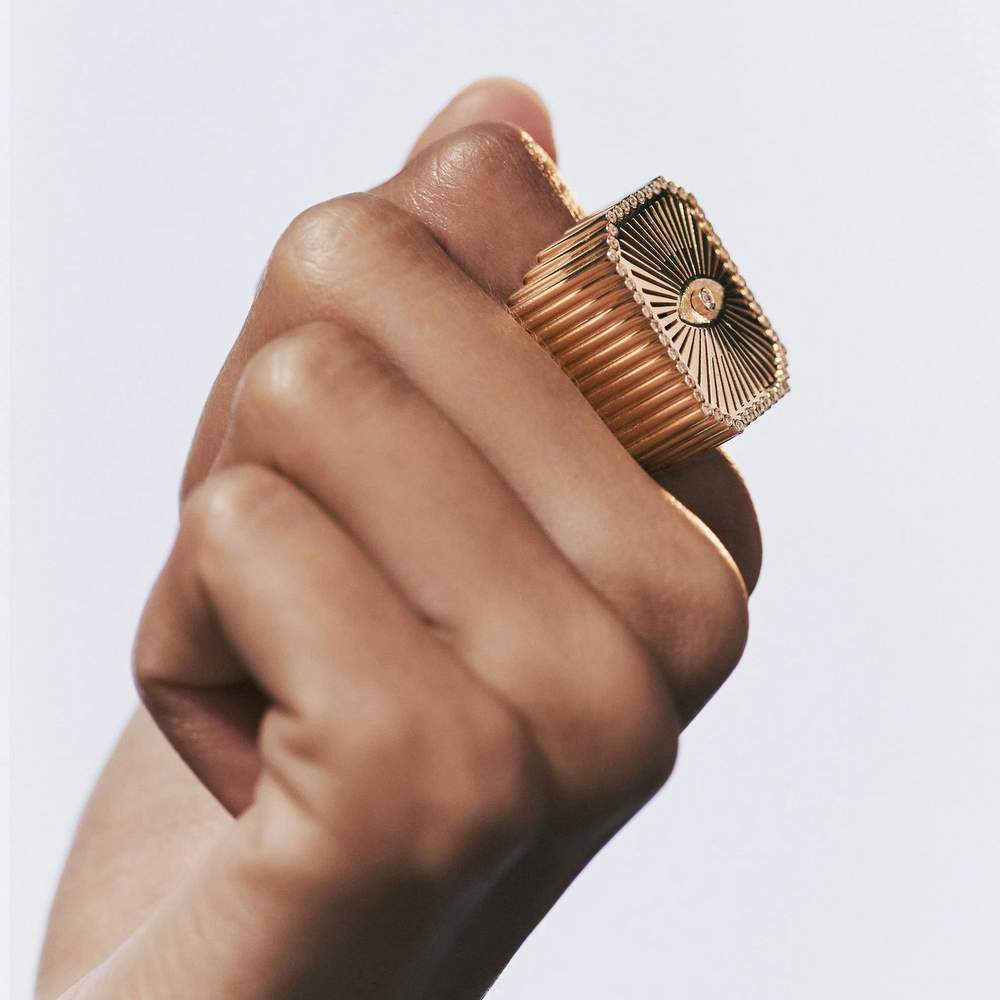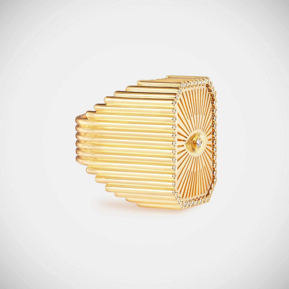 Add to WishlistInel din aur galben, cizelat și gadroonat, încrustat cu diamante albe.
