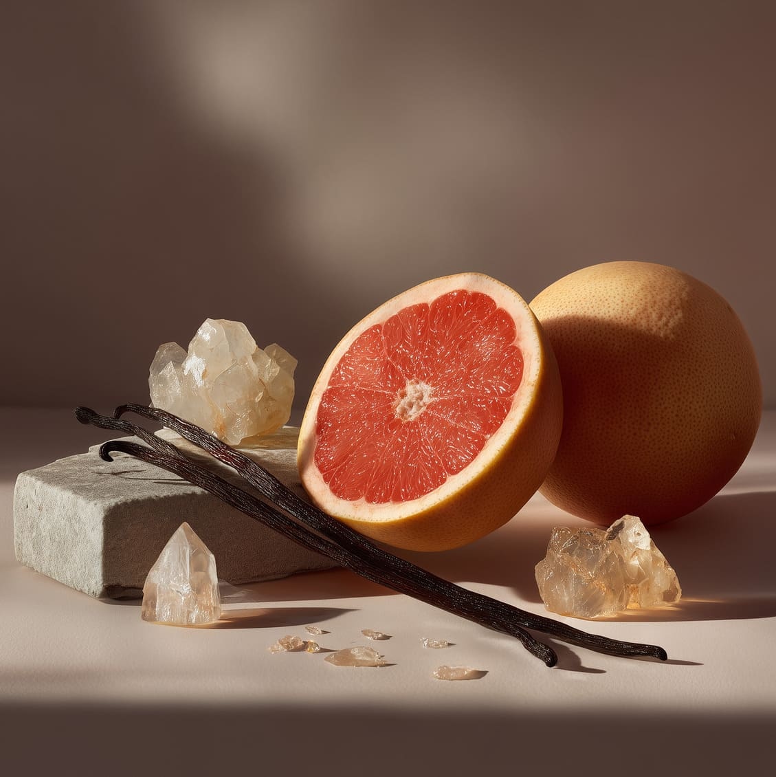 Grapefruit illuminates the moment with a bright glow; amber softens its contours; vanilla, warm and tender, delicately closes the scene.
