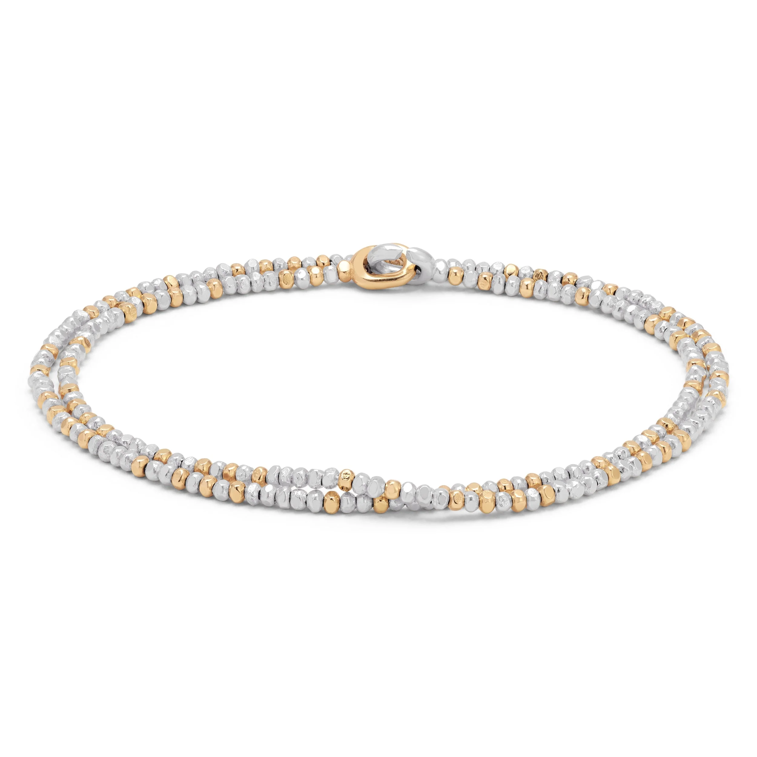 Add to WishlistRaw and yet refined with 925 sterling silver and 18k yellow goldĀ corner-lessĀ beads, the craftsmanship finds each individual element hand beadedĀ to precision each time. Whether worn on its own or stacked next to other MAOR complementary pieces, the Noix is beautiful and classicĀ toĀ be worn as a three wrap bracelet or necklace.