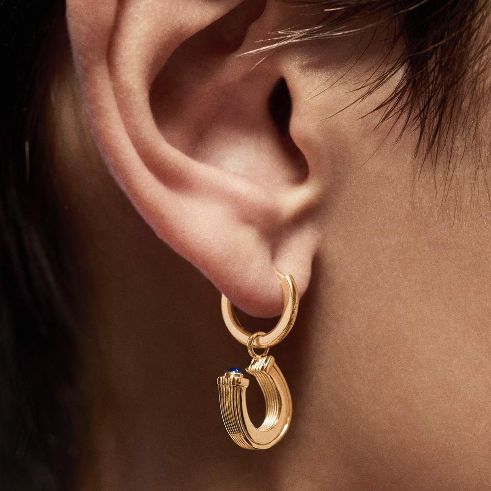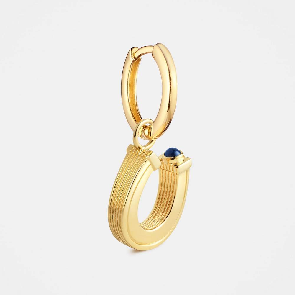 Add to WishlistYellow gold earring, set with a blue sapphire.
