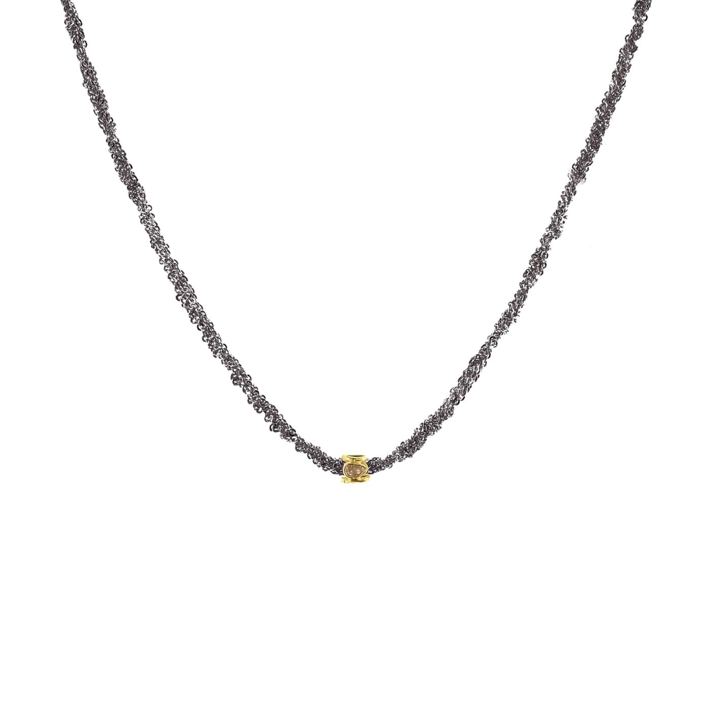Add to WishlistShort necklace in 925 Sterling silver with a ruthenium finish, crafted from a delicate braid of chains and adorned at the center with a faceted gold bead set with Polki diamonds.