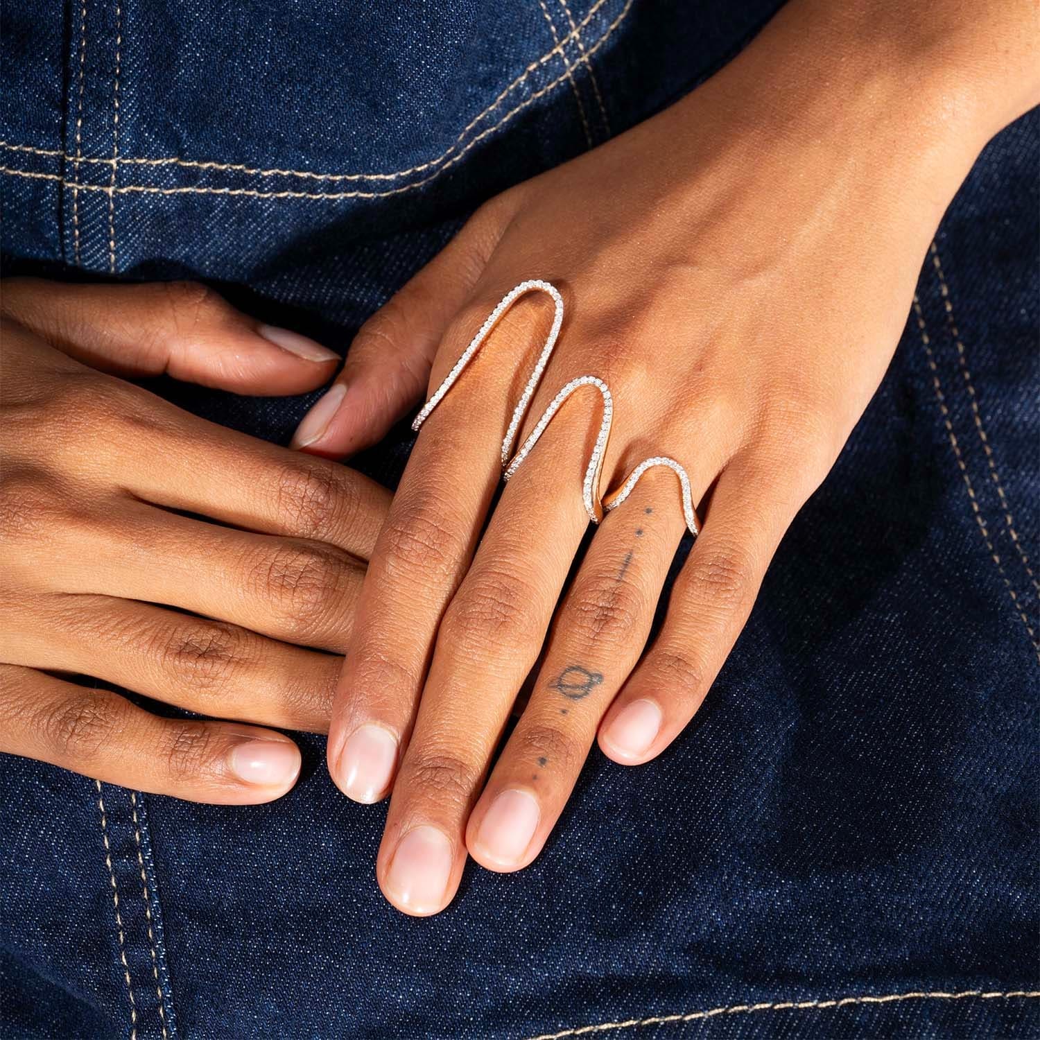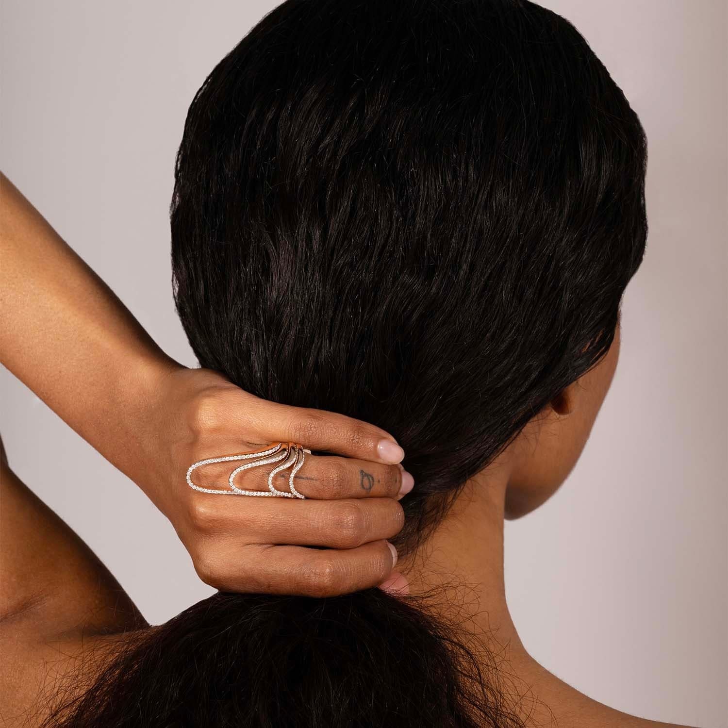 Add to WishlistCrafted in 18k rose gold, the ring is set with 31 diamonds on the top part, totalling 0,25 ct. The diamonds perfectly catch the light creating an illusion of a light drawing.
