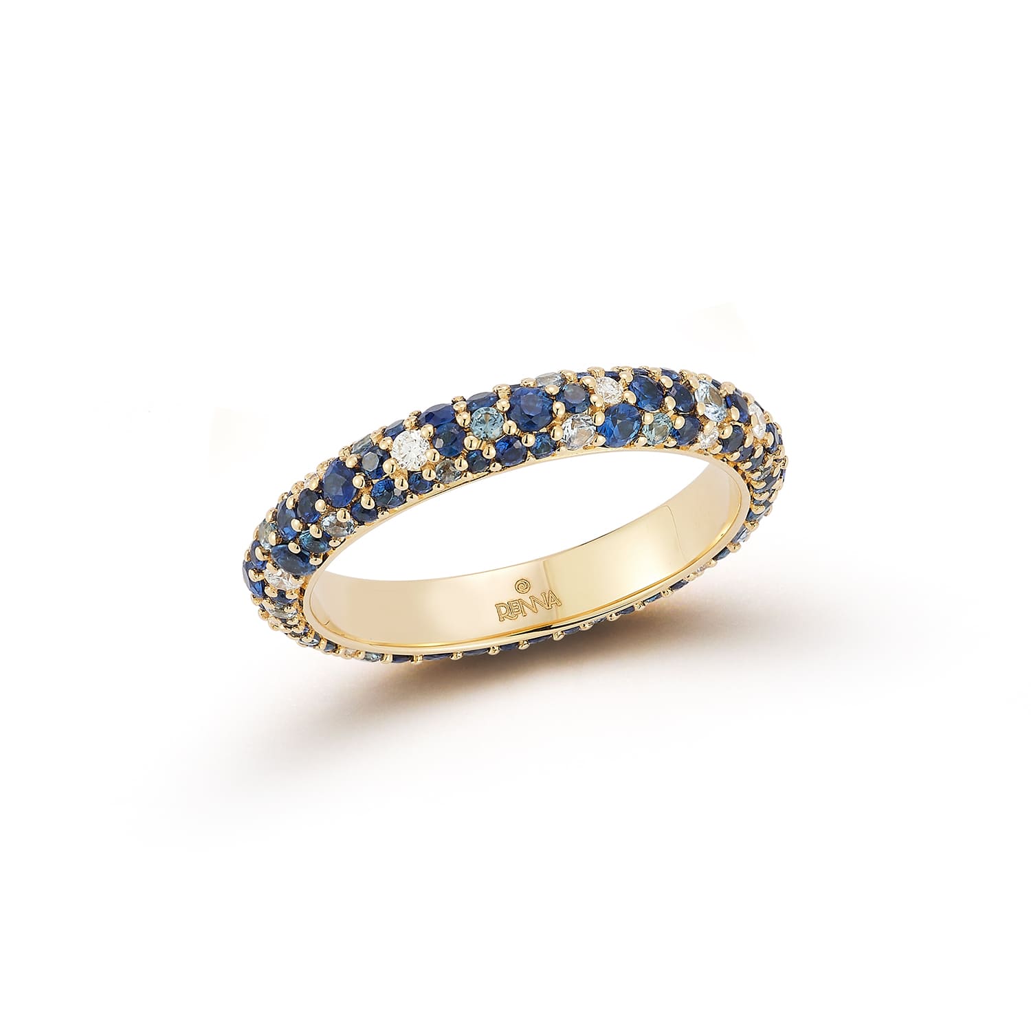 Add to WishlistThe Tidepool Ring, now in a refined 3mm width, features a delicate blend of diamonds and sapphires in varying sizes and hues, evoking the soft shimmer and movement of the sea.