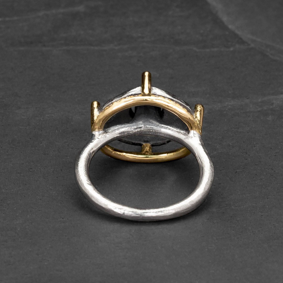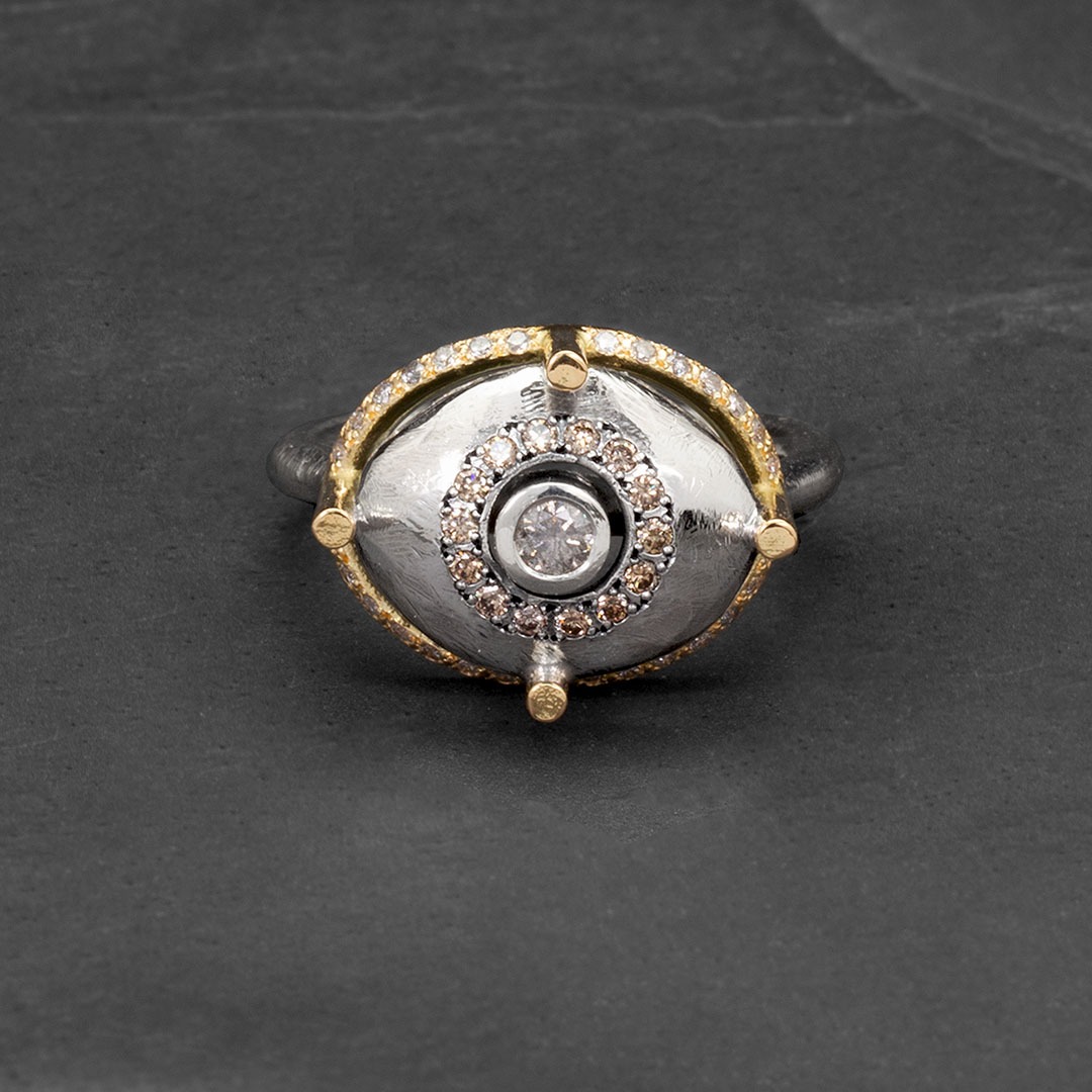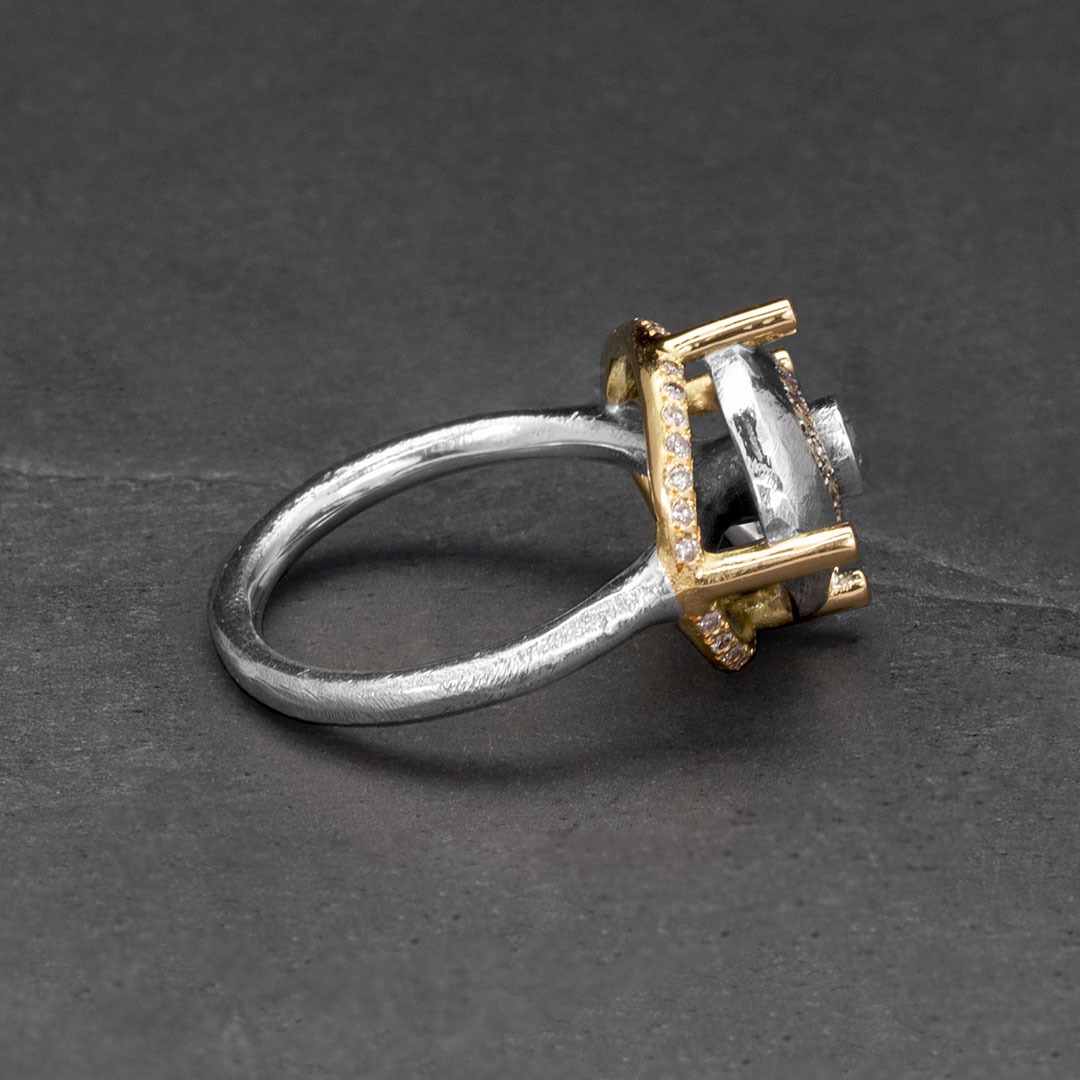 925 silver and 19.2 carat gold ring adorned with champagne & grey diamonds.
