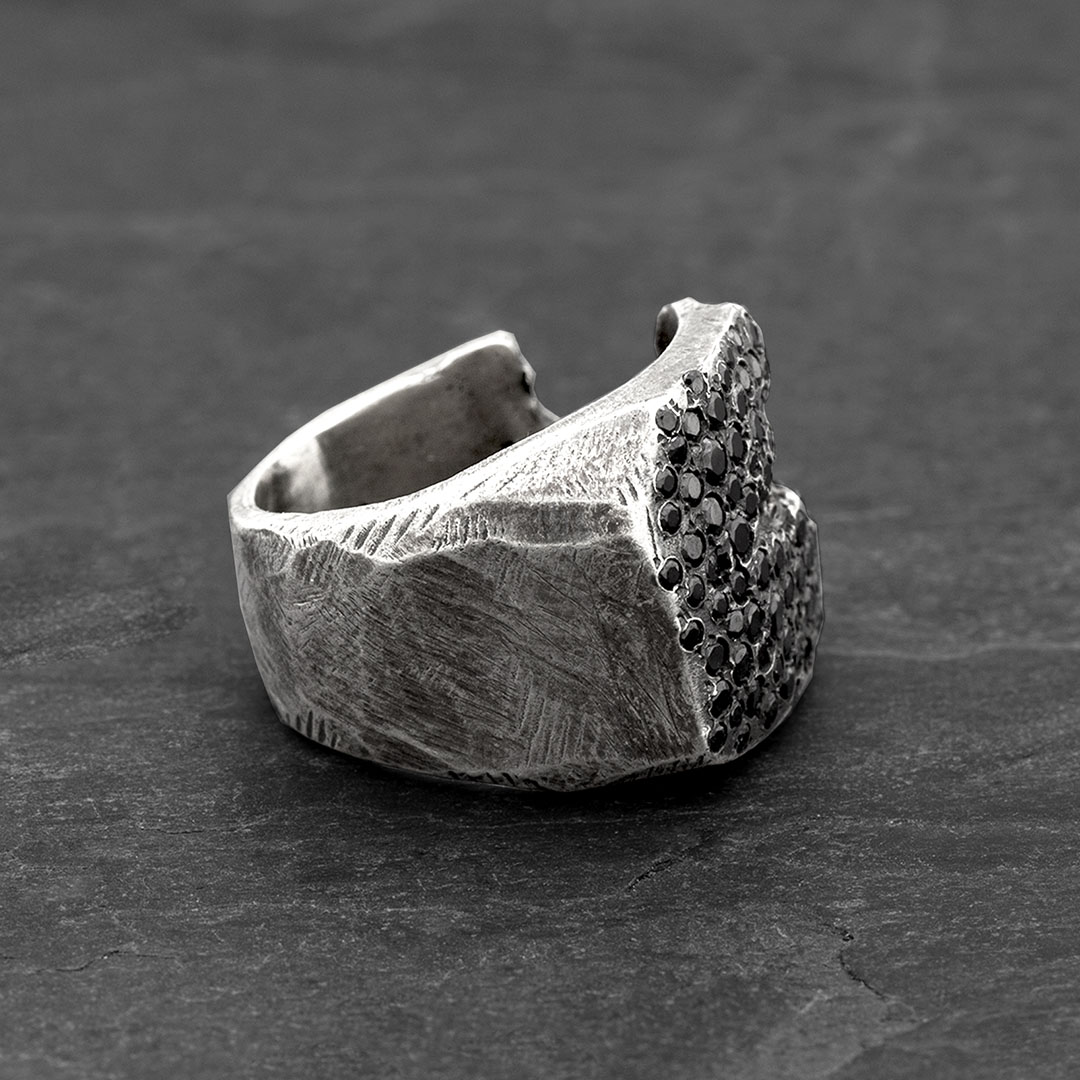 Add to Wishlist925 silver ring adorned with black diamonds.