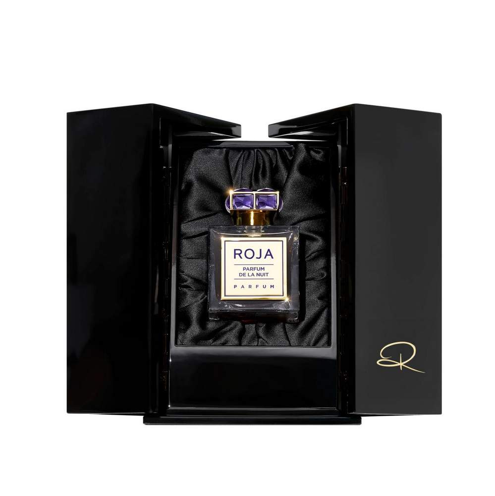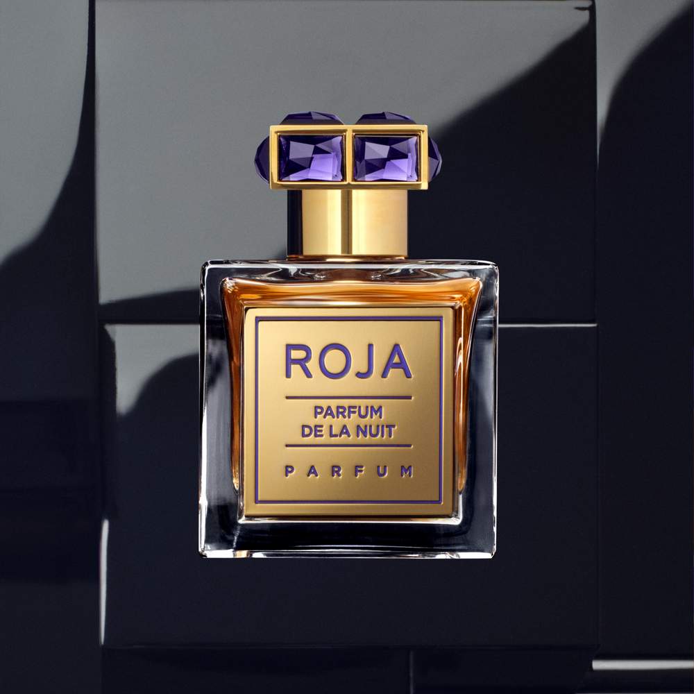 „Inspirat de arta seducției, am creat PARFUM DE LA NUIT ca o armă secretă olfactivă. Un amestec chibzuit de materiale formează un parfum de seară elegant, care captează senzația unei alergii de chimie. Cu capacitatea sa de a imita senzația de piele caldă, lemnul de santal din Indiile de Vest se topește în tonurile somptuoase de mirodenii ale șofranului prețios, care amplifică căldura. Dulceața răcoroasă a Trandafirului de Mai se transformă în ceva decadent și primitor: o perlă de transpirație se așează pe piele așa cum odinioară roua stătea pe petalele sale. Notele de piele și Labdanum își croiesc drum din umbră, adăugând un impuls animalic pentru a rezulta un parfum atât de primitor încât devine hipnotic.” – ROJA DOVE.