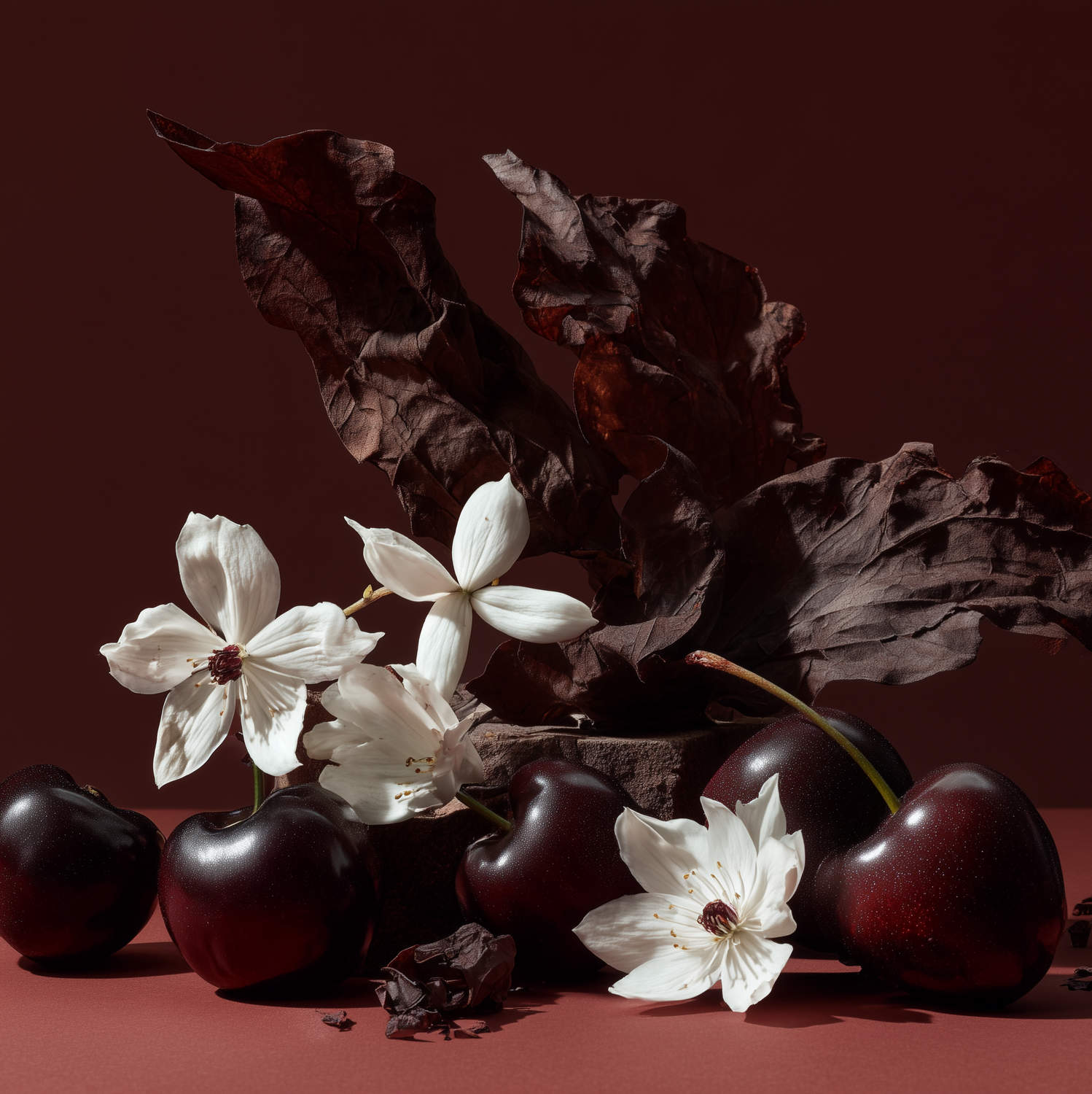 Sticla reflectă această intensitate: roșu intens, un omagiu adus cireșelor negre, accentuat cu nuanțe aurii, simbolizând căldura și rafinamentul.